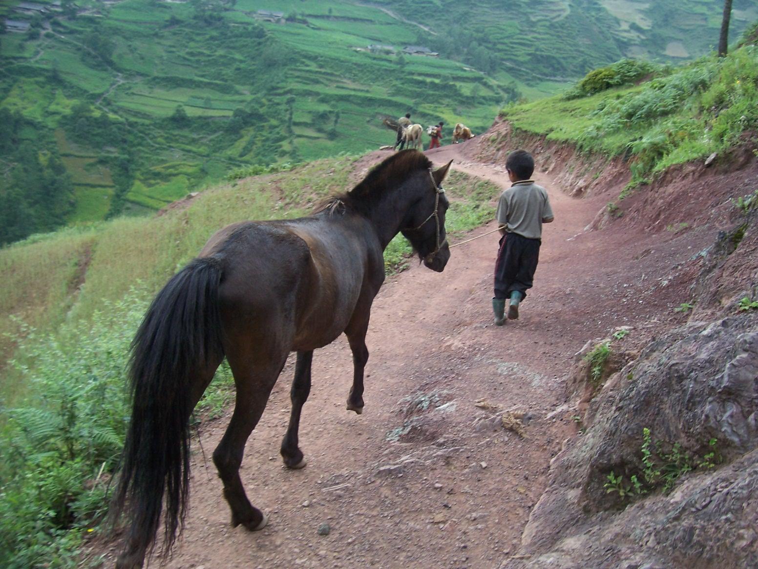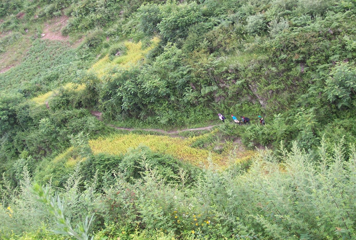 7月8日早,我们离开哈洛乡。下山是没有办法找到车的,我们是沿着这条小路下山,再到那条基本没有车跑的乡间公路上,一直走到下面的典补乡。在那里,学区中心校找来的车已经等在那里了……