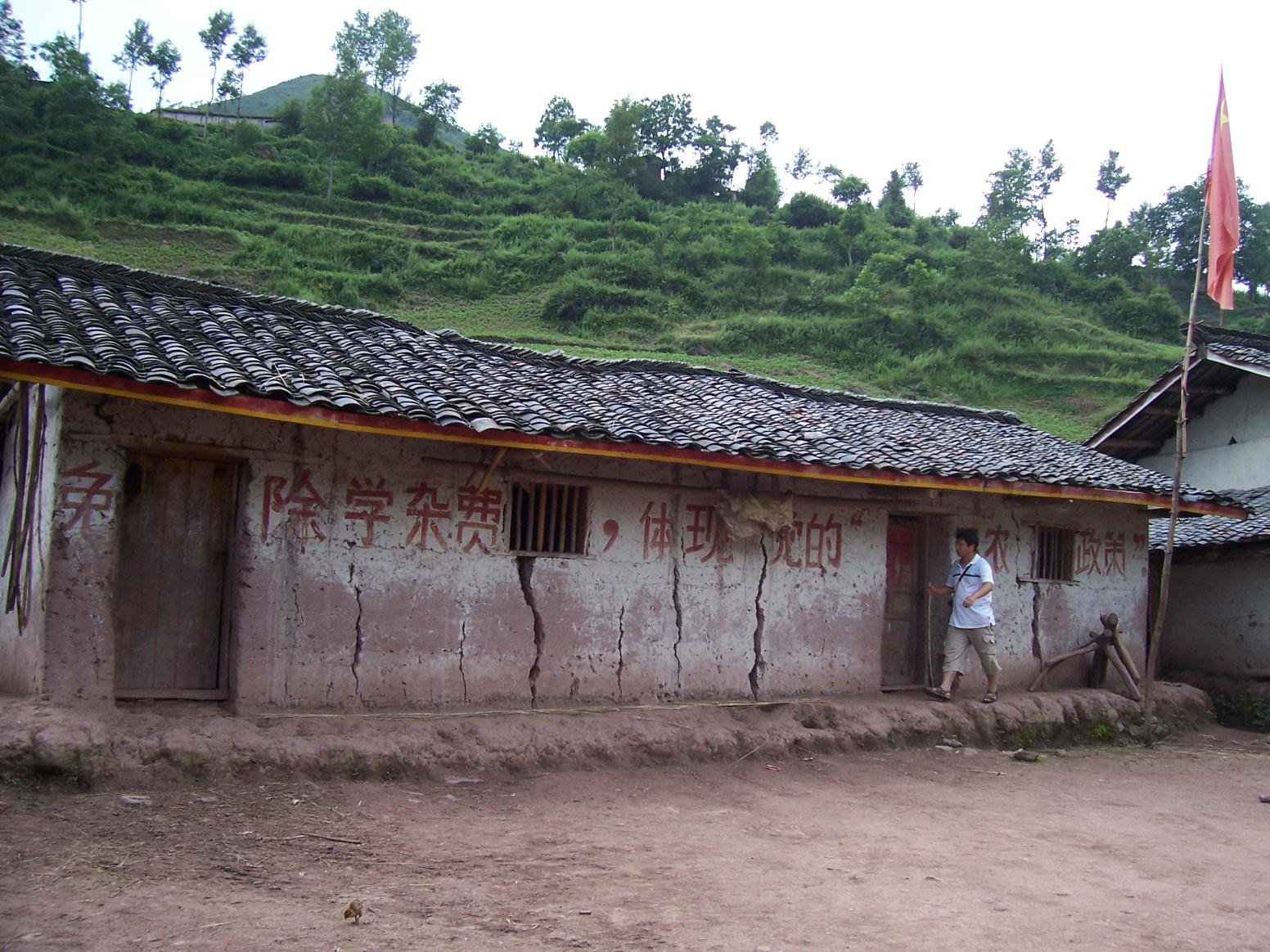 这里就是乡中心校了,一排水泥砖房,三间教室、两间教师宿舍(也在作为教室用),共有四个年级的108个孩子在这里读书……