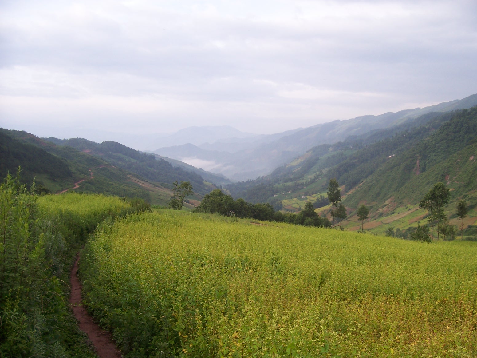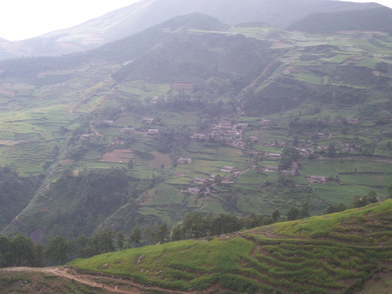 这里没有街道,当然也没有饭馆,乡政府的伙房亚没有做午饭,幸好我们从县城带了些馒头,大家随便吃了一点就开始进山了——其实到了美姑就是在大山中了,这里难得看到一块大点的坝子,县城也是在一条山沟里的。