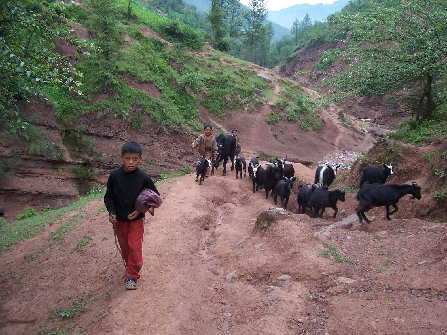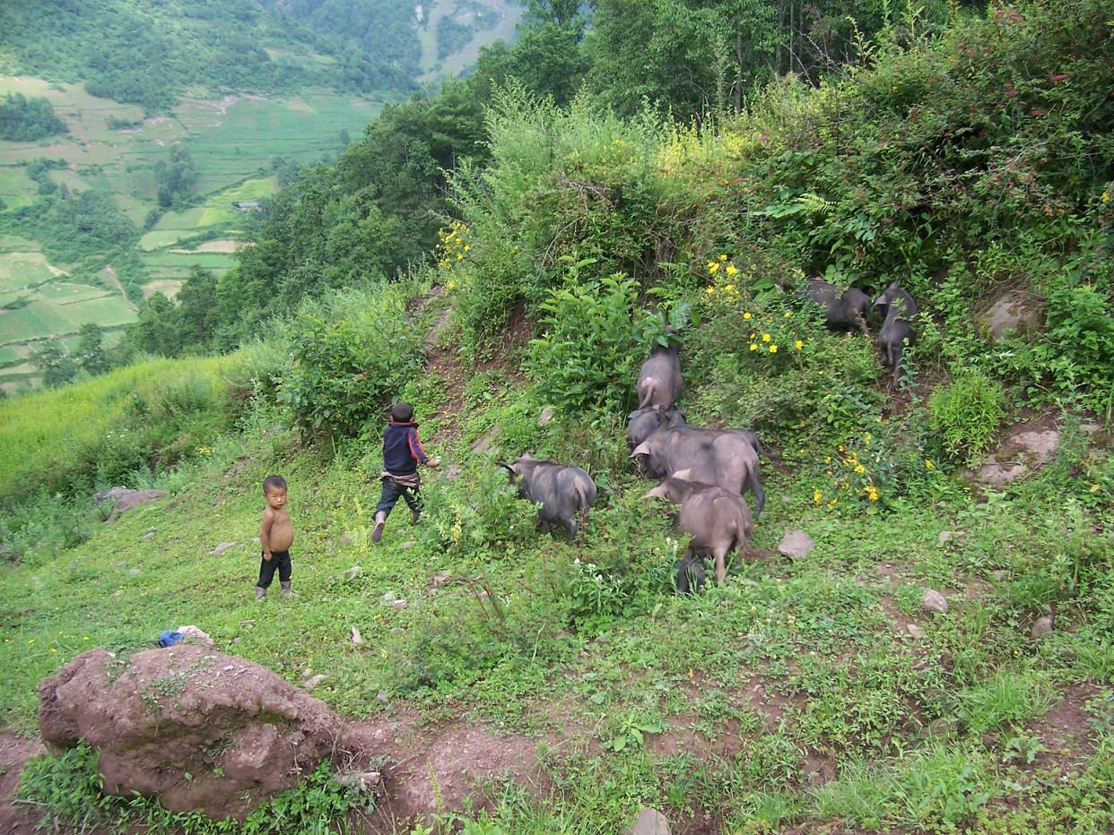 我们去够娥村时已经是 牧归的时间了,村民和孩子们正带着牛羊马猪返回他们的村庄……