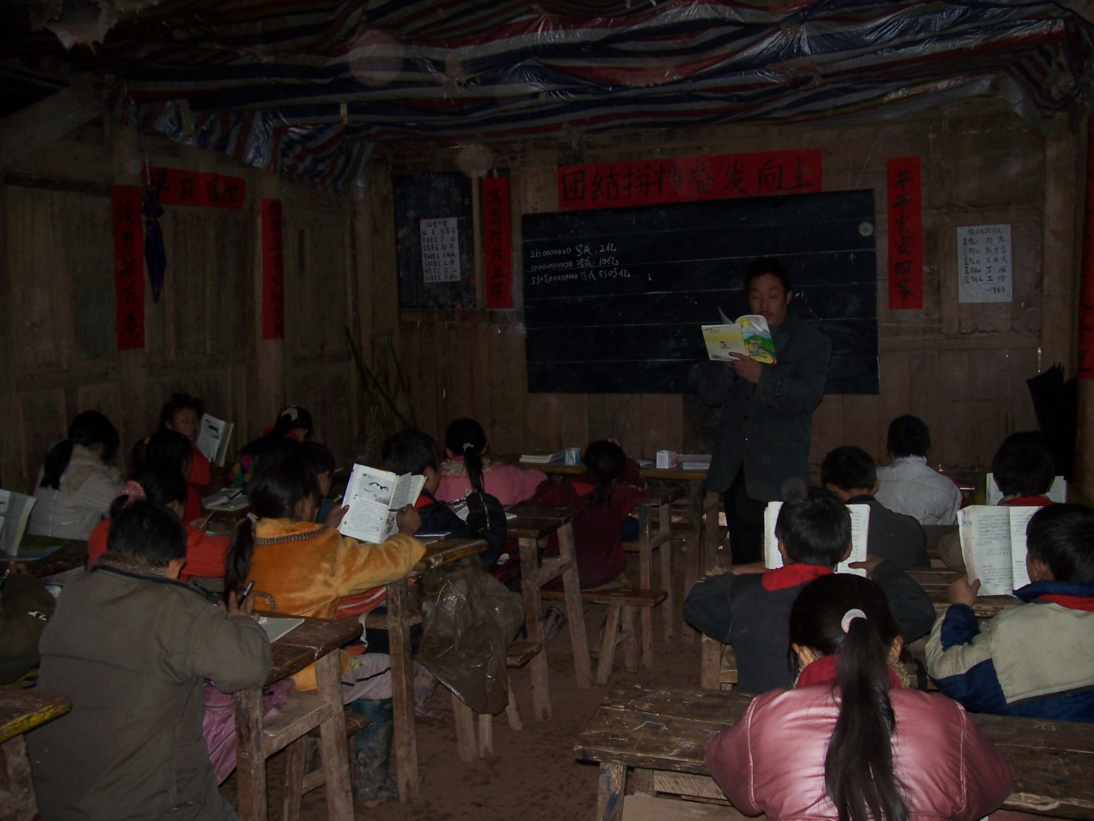 这是一座年久失修的木结构房子,到这个学校需要走两个多小时的山路……