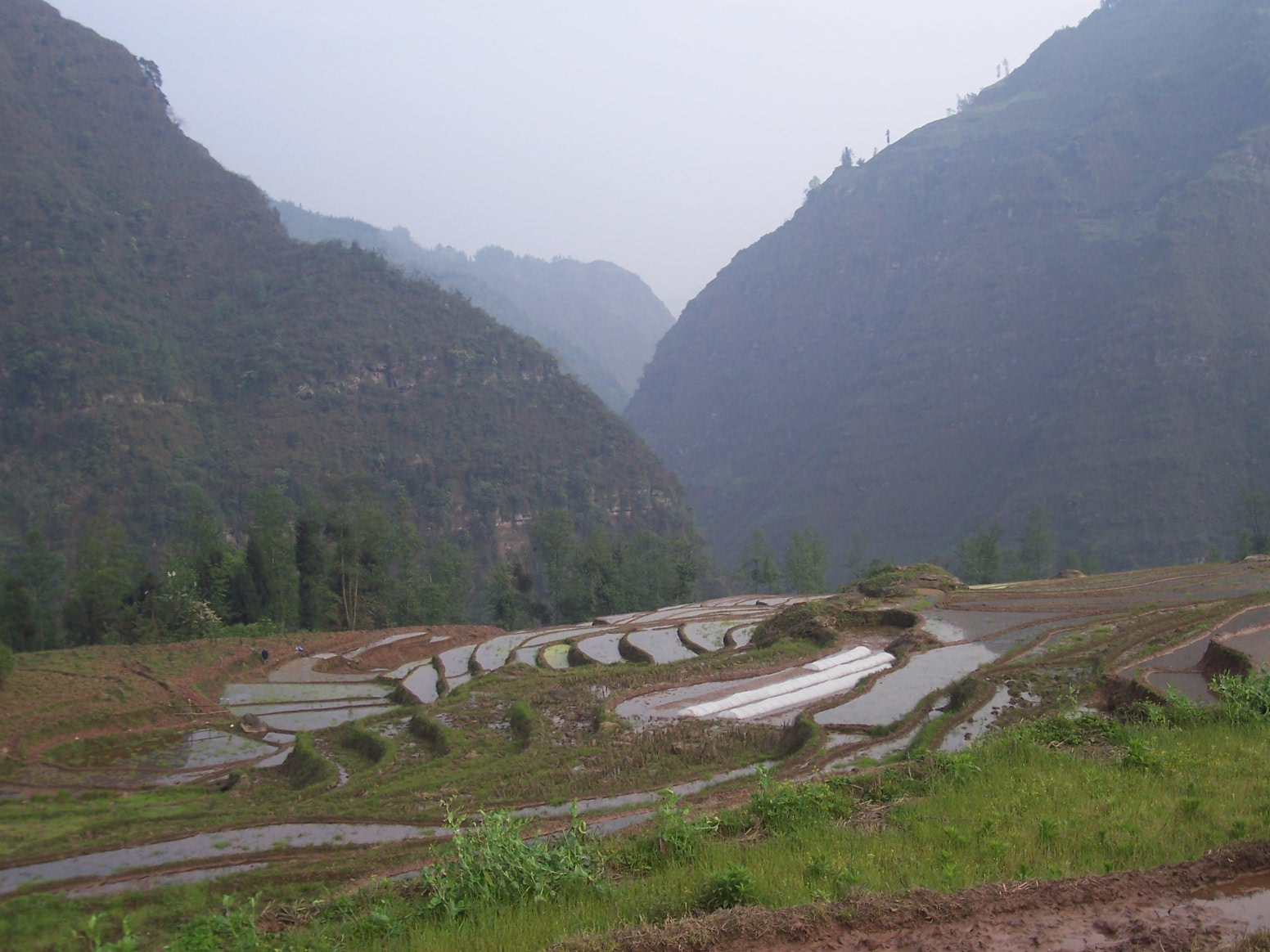 今天,在送走来这里考察的上海“老陈”和他的女友小王后,我和民主中心校的刘老师一起冒着细雨,走了两个多小时去访问三河小学……