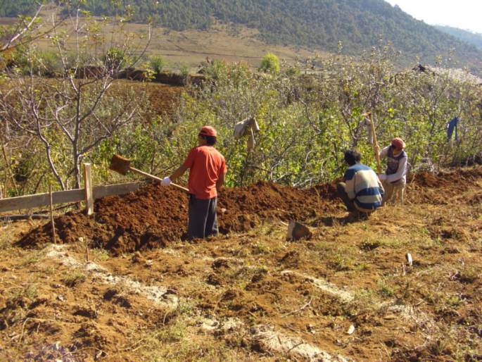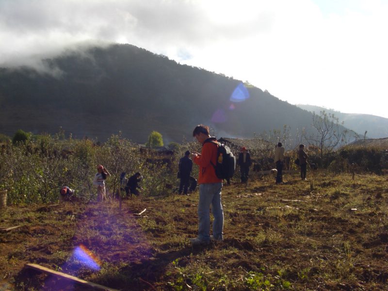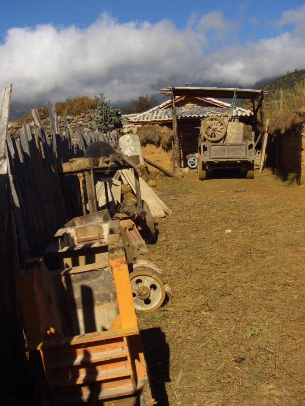 天色擦黑的时候,我们到了拖拉坪,这里是一个彝族村落,零落分布着一个个用木头搭建的房院。正待开工建盖的小学就是这个村落的村小。