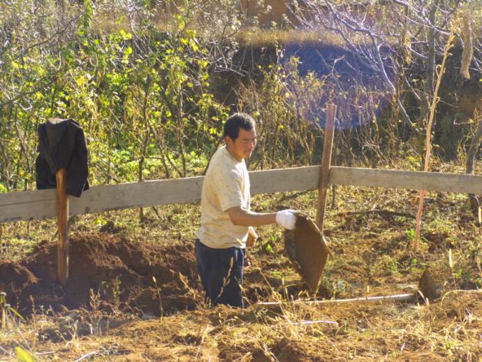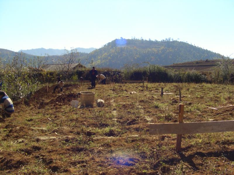 建校的施工队也来了,工头正是信天在宁蒗县助学的负责人浦礼顺的兄弟,杨校长介绍给我们,这位是老蒲。老蒲是个有着开朗的笑容的人,他刚接到信天北京过来的一个长途电话,要求施工队立刻开始在战河乡那边建盖另一所小学,两边同时动工。老蒲苦恼的是,人力不好找,这个地方的人工报酬都涨了,很多人更愿意去薪水更高的施工工程处干活挣钱,这个施工队的人有是因为兄弟情面留下继续。有些无奈,但是事情还是要做下去,不知道现在怎么样了。