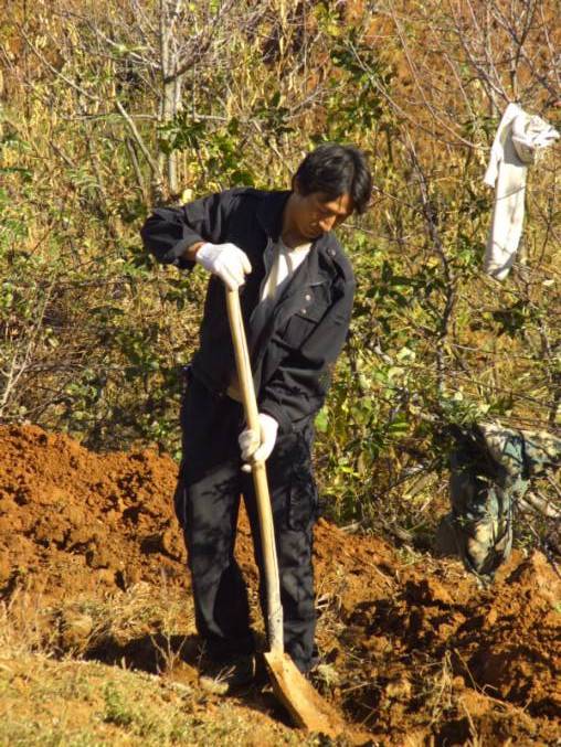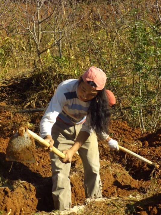 太阳公公出来了,大家来到施工队开辟好的地基上,金色阳光洒下,土地一派生机。我拿出相机,开始给施工队和动工的小学农地拍pp~