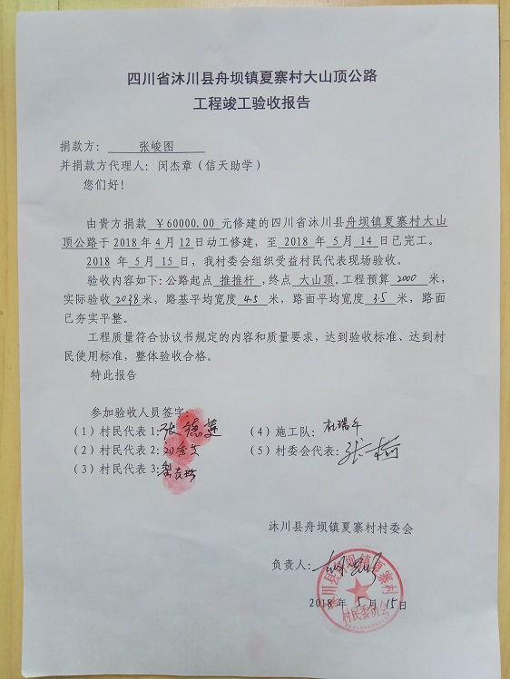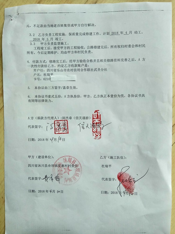 (1)爱心人捐款、村民投工投劳一起修土路,干季可以通车;