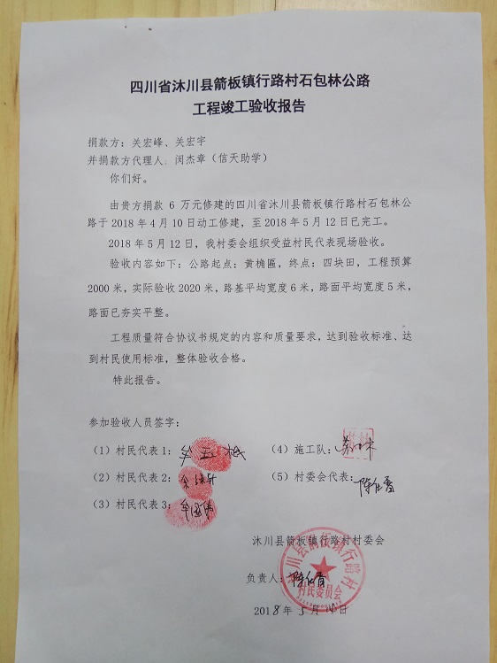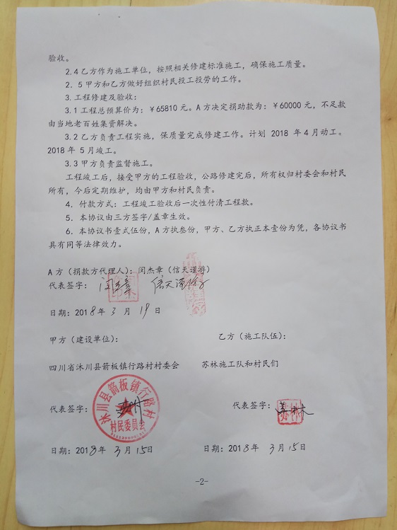(1)爱心人捐款、村民投工投劳一起修土路,干季可以通车;