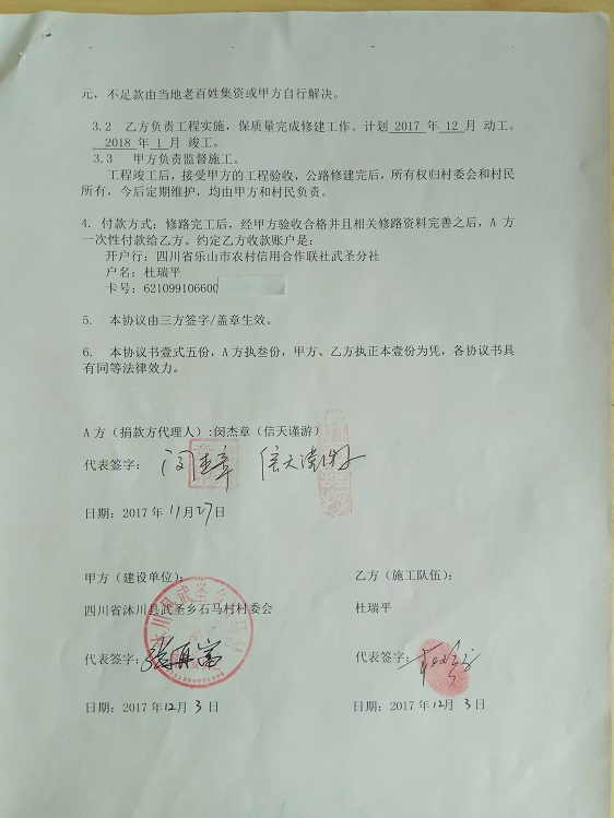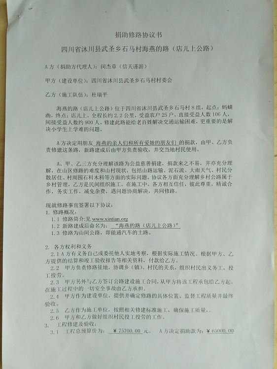 捐助修路协议书