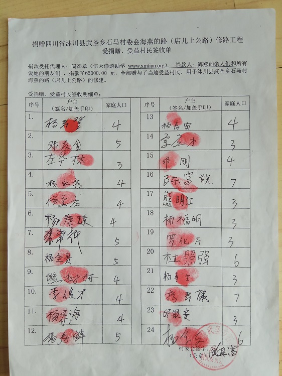 受益村民签字单