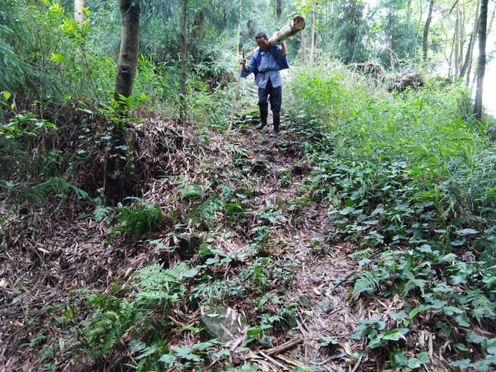 不通公路,村民劳动靠肩扛背驮。