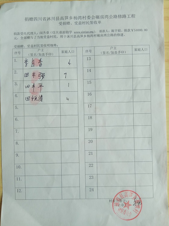受益村民签字单