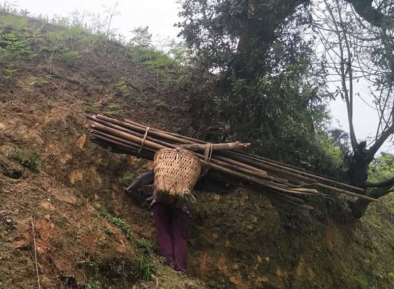 这里世代不通公路,村民劳动靠肩扛背驮。
