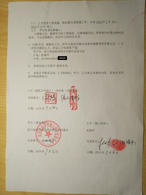 (1)爱心人捐款、村民投工投劳一起修土路,干季可以通车;