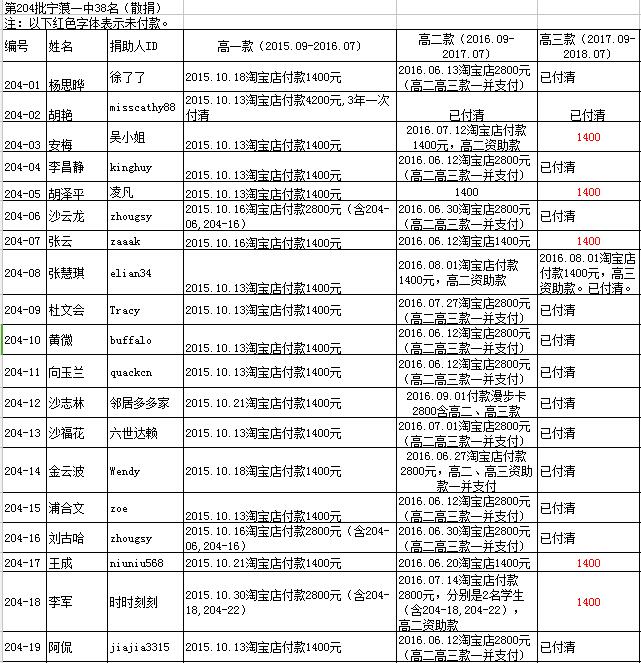 、231批(airmizzle一家捐助)、232批(老资助人-续捐)。其中203批、216批资助金额已付清。
