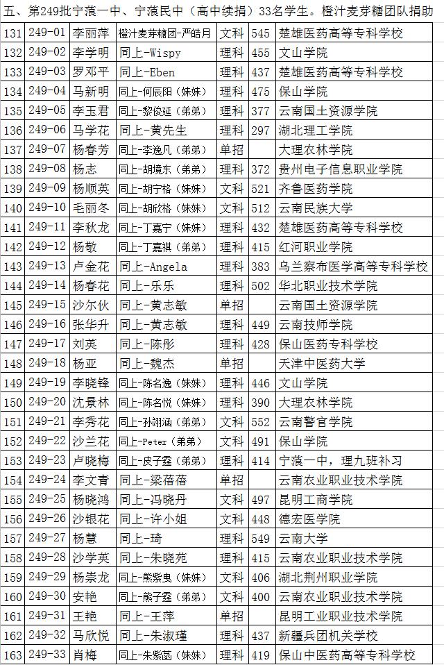 2020年受助学生高考成绩及录取院校情况2020年10月5日更新
