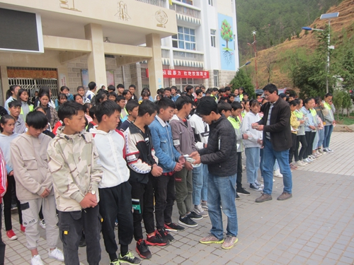 蒗渠中学,一起发放资助款,学生领款照片