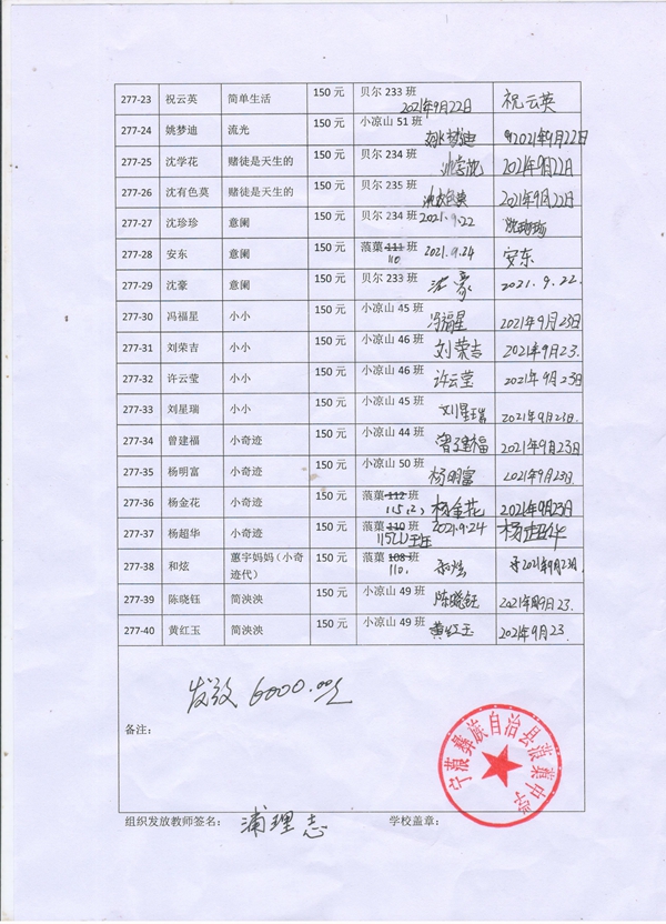 第277批红旗中学(2021年3月-2021年7月)受助学生签收确认单