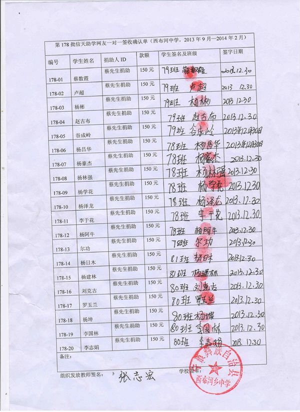 图片附件: 第178批西布河中学,信天助学网友一对一签收确认单.jpg (2014-4-20 16:36, 99.57 K)