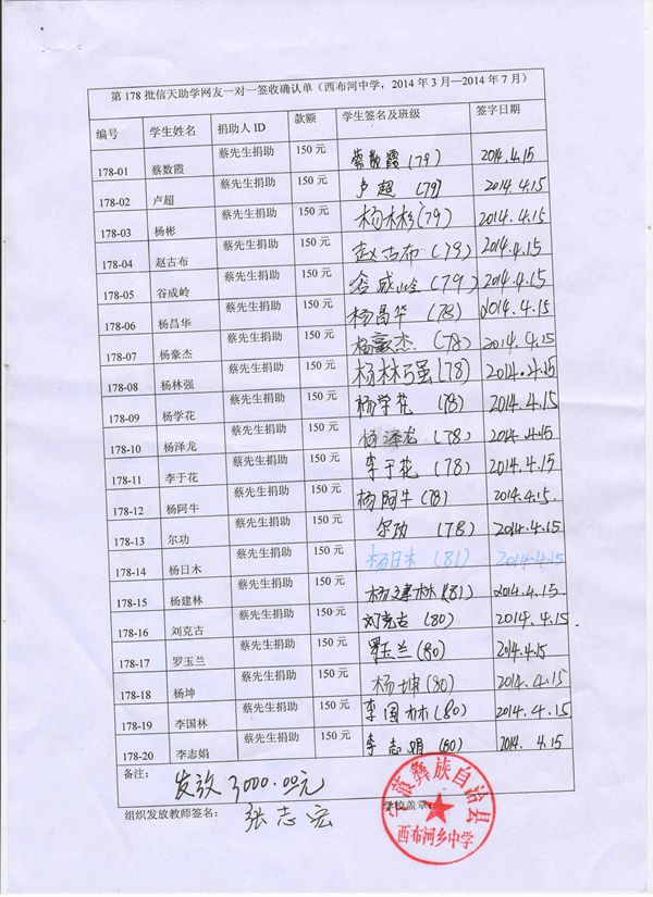 图片附件: 第178批西布河中学,信天助学一对一资助款签收确认单.jpg (2014-10-23 17:21, 110.57 K)