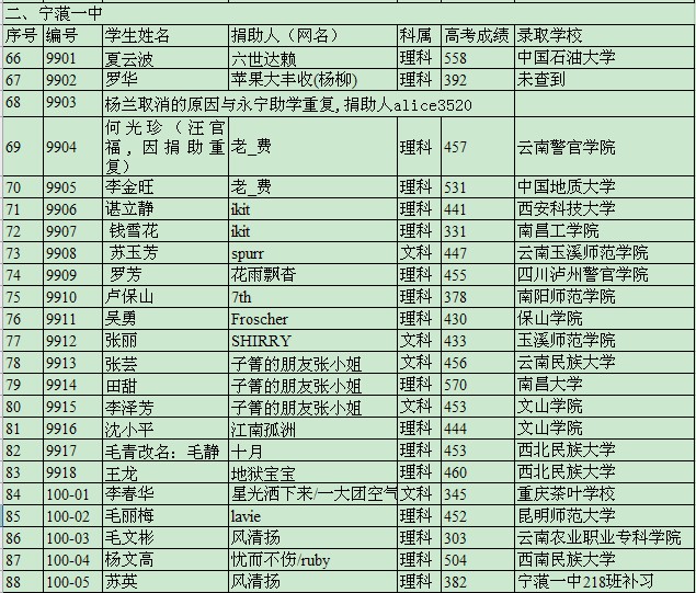 宁蒗县2013年信天助学高考成绩和录取学校情况