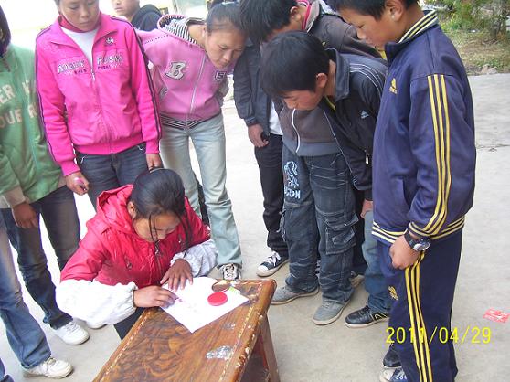 5、我们和当地老师达成如下共识:如果捐助人碰到学生提到需要东西,比如要眼镜、随身听、字典、书籍或有其他方面的情况。可以告诉学生先把他们的困难告诉老师,由老师落实具体后再转告给我们。
