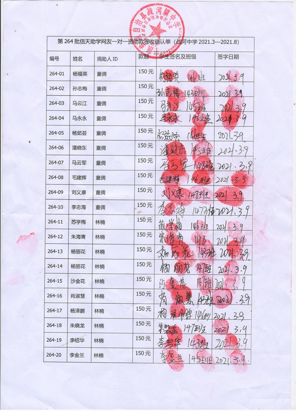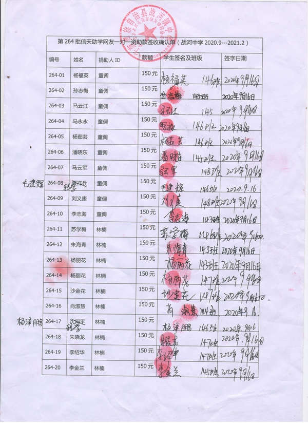 264-08夏祥兵,因中途转学,资助款转给毛建辉;