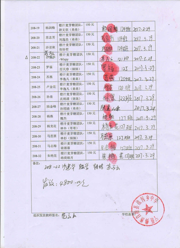 » 第208批受助生名单(战河中学初一32名学生,橙汁麦芽糖团捐)