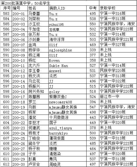 标题: 2017年信天助学初中生毕业中考成绩及录取学校情况