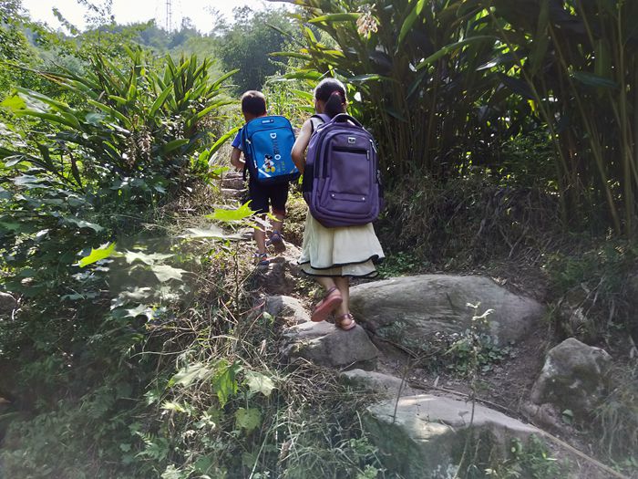 小学生上学之路,等修好了路之后,就可以坐拖拉机、面包车上学了,或者骑自行车上学了。