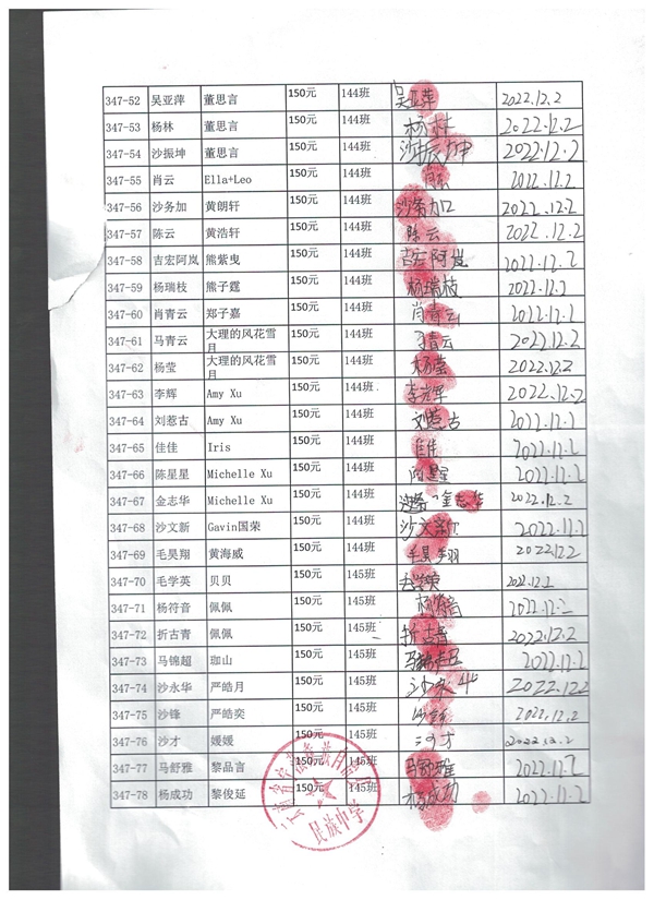 347-30黄仙慧,因中途辍学,资助款转给杨金兰;