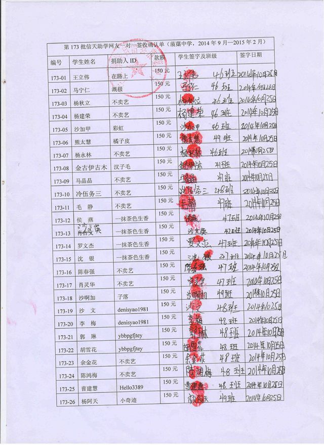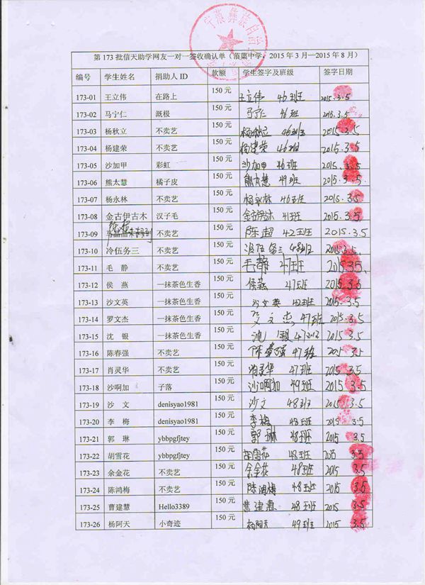 173-53和颖,因中途辍学,资助款转给 吉命阿罗;