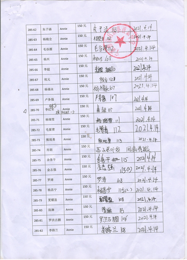 285-04毛伍干;285-14毛荣光;285-23李胜;285-54沙秀珍;