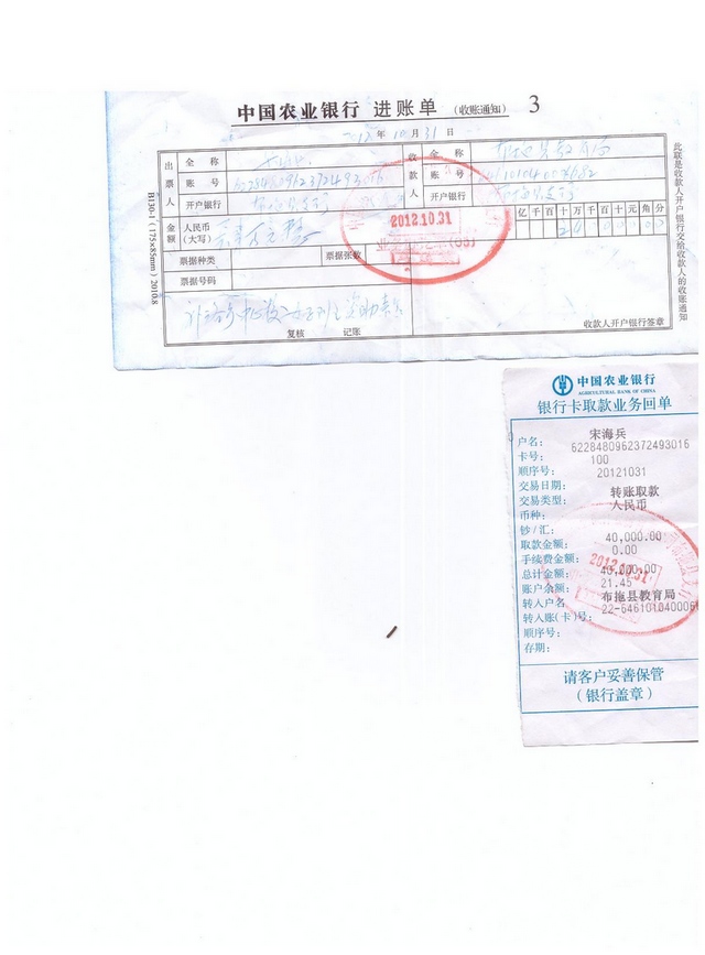 (1)2012年9月6日汇给宋海兵40000元;