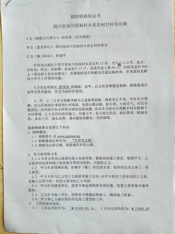 捐助修路协议书