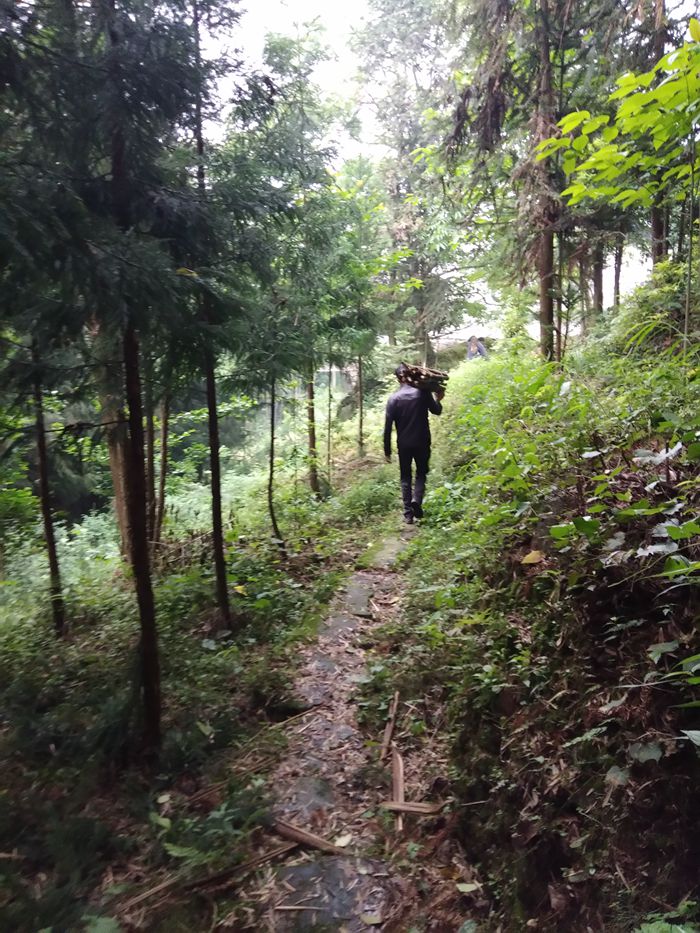不通公路,村民劳动靠肩扛背驮。