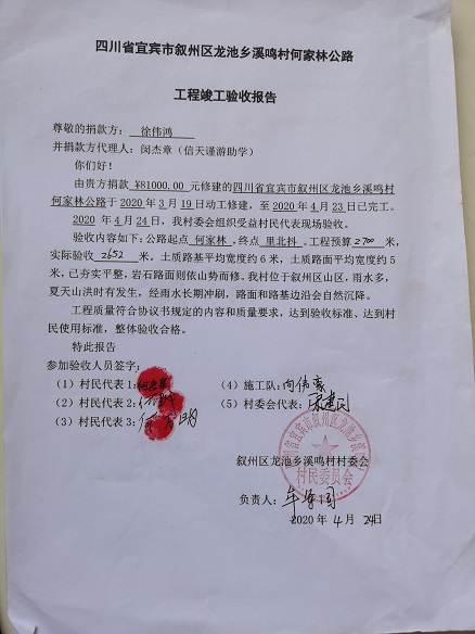 标题: 第251条:宜宾市叙州区龙池乡溪鸣村人民组何家林公路(徐伟鸿)