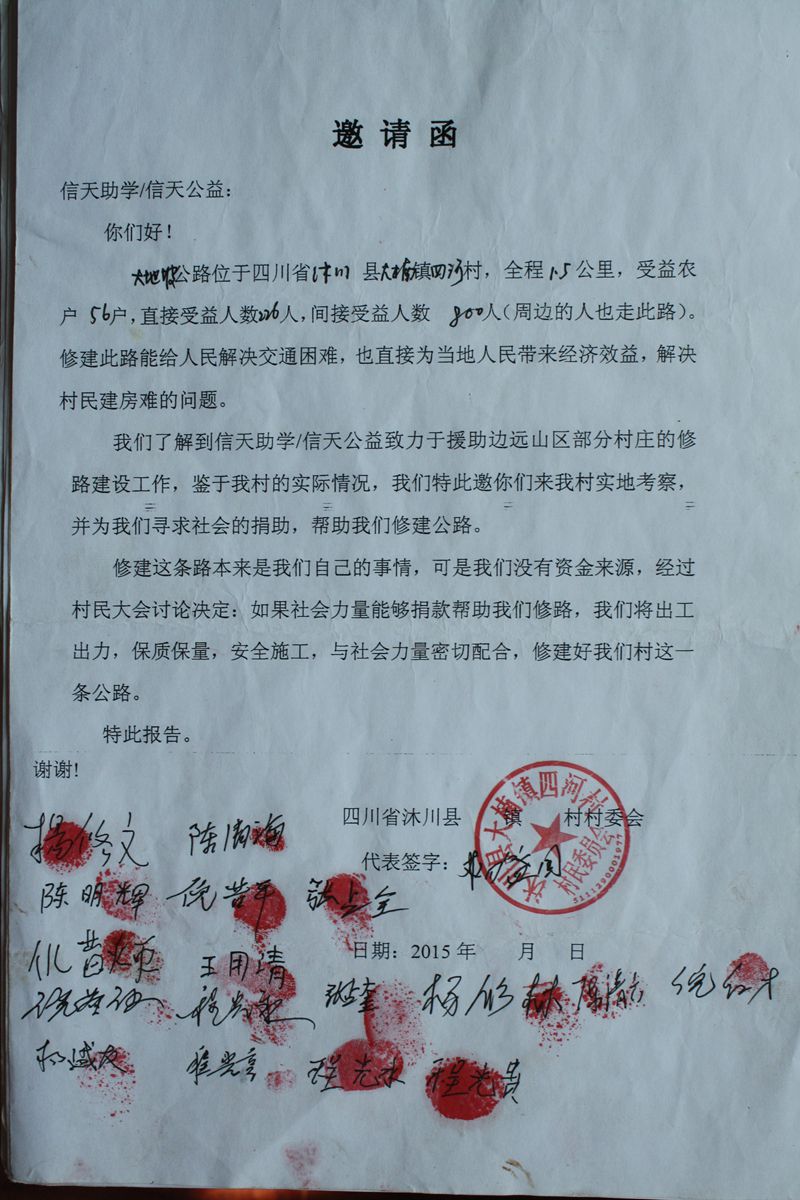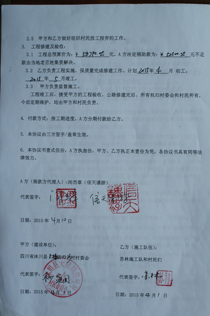 2015年4月17日信天收到52500元捐款,当地村民看了好日子,计划4月17日开工。