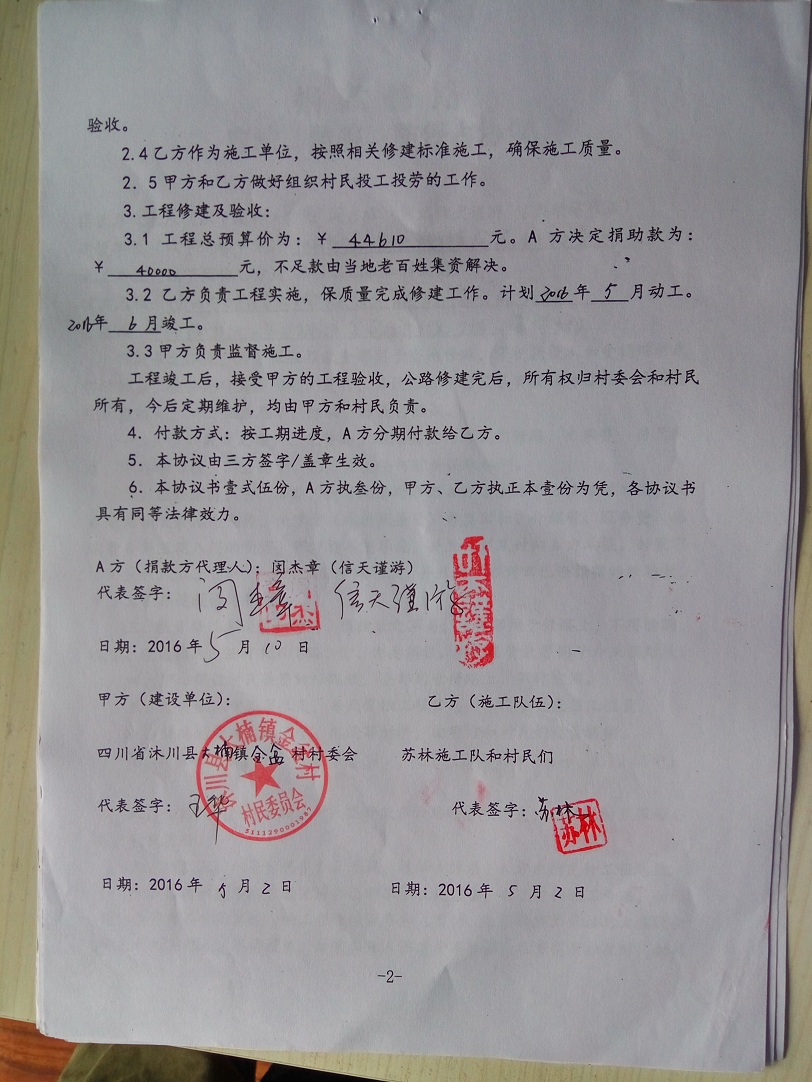 (1)爱心人捐款、村民投工投劳一起修土路;