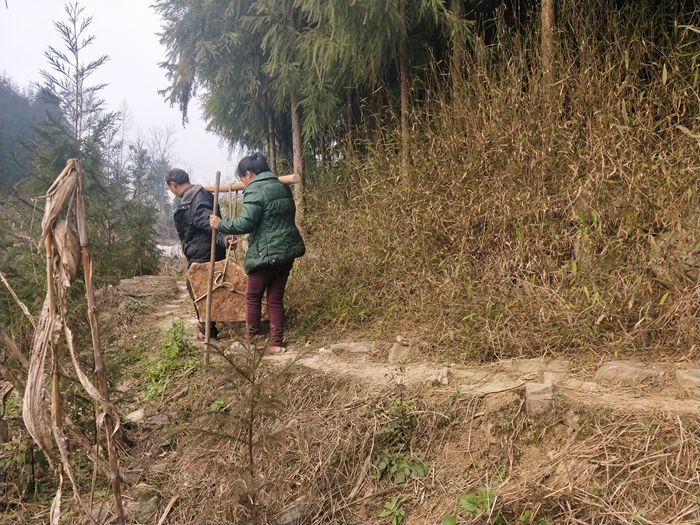不通公路,肩扛背驮。