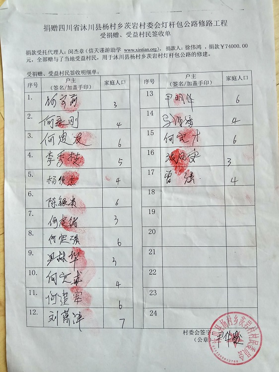 受益村民签字单