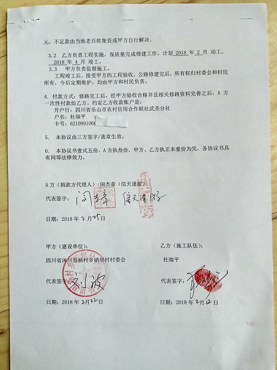 (5)修路预算分好几部分,有挖掘机、涵管、炸药爆破(山崖需要爆破)、堡坎、村民义务工、征地等。修路,我们不全包,我们出一大部分钱:挖掘费用、山崖爆破等。村民出义务工、涵管、征地费、村民小额集资。