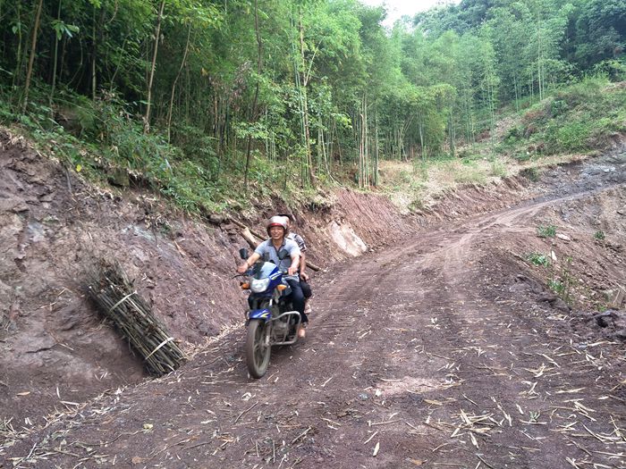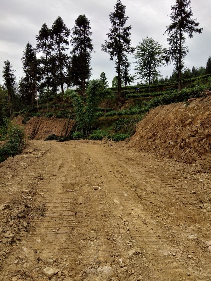 这是修路的第一步,先修土路,爱心人捐款、村民投工投劳一起修土路,干季可以通车;
