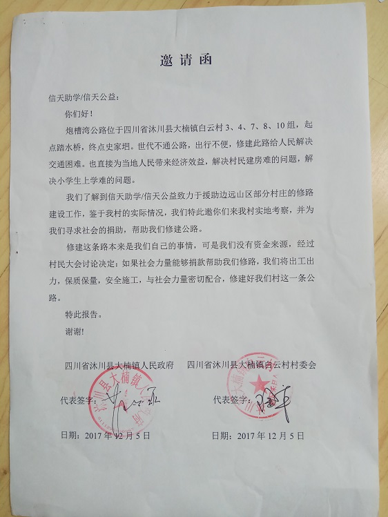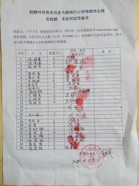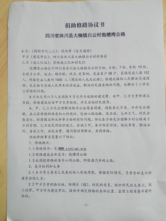 (1)爱心人捐款、村民投工投劳一起修土路,干季可以通车;