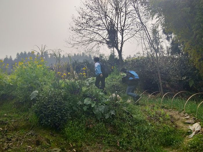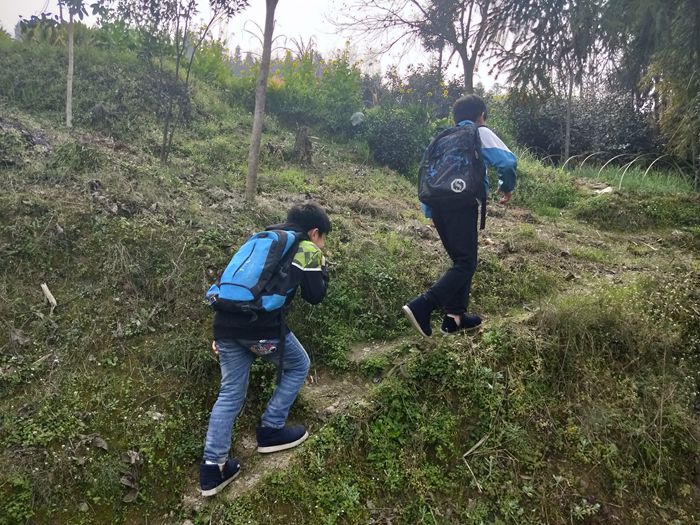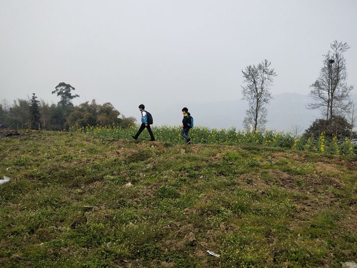 小学生上学之路,等修好了路之后,就可以坐拖拉机上学了,或者骑自行车上学了。