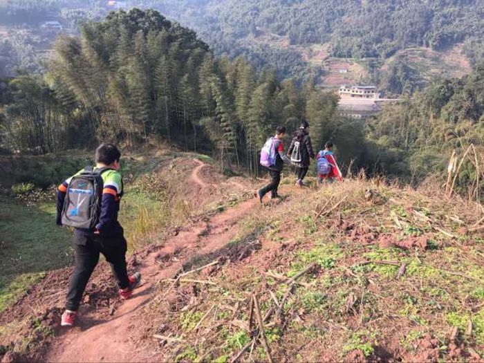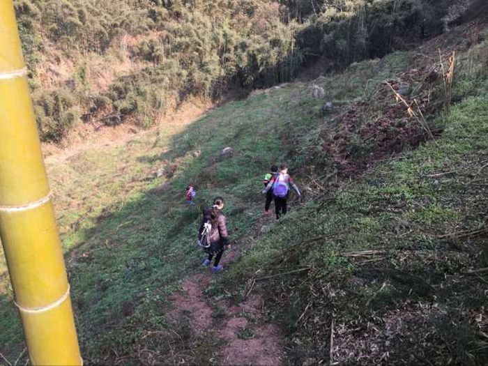 小学生上学之路,等修好了路之后,就可以坐拖拉机上学了,或者骑自行车上学了