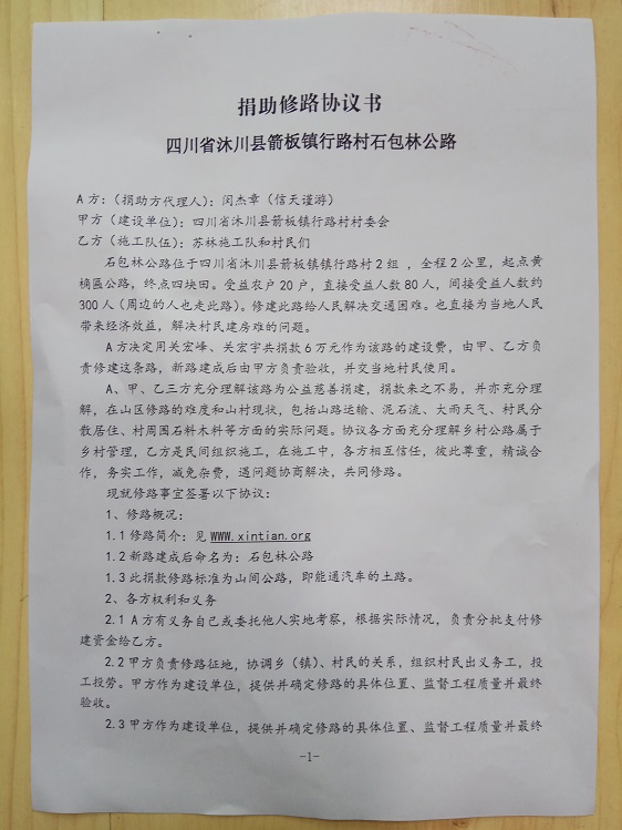 捐助修路协议书