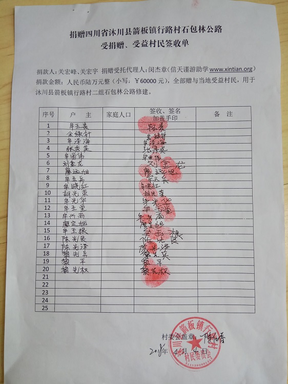 受益村民签字单