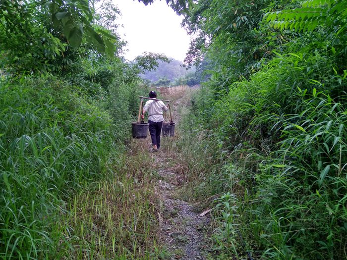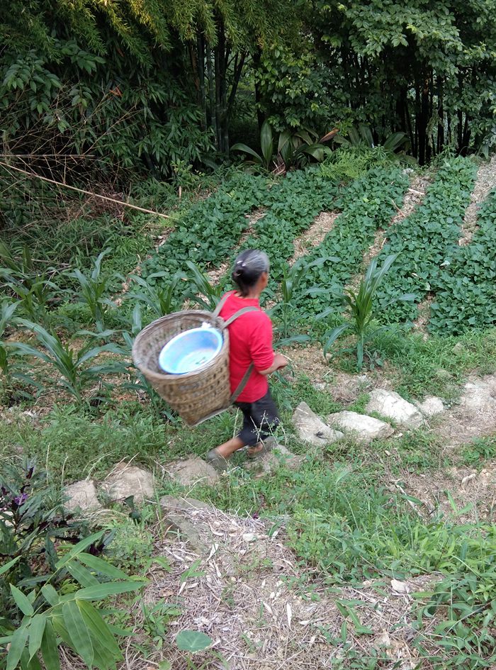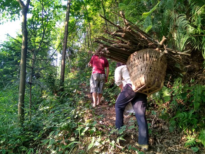 不通公路,村民劳动靠肩扛背驮。
