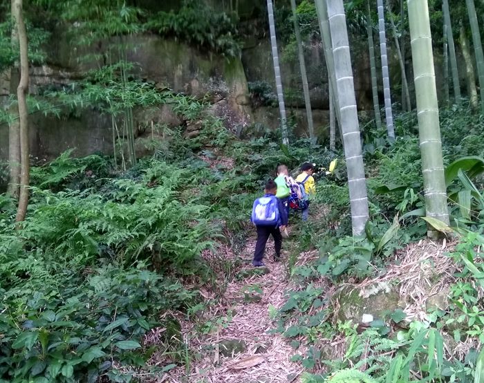 小学生上学之路,等修好了路之后,就可以坐拖拉机、面包车上学了,或者骑自行车上学了。