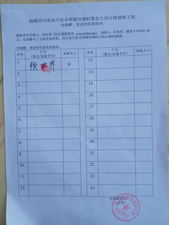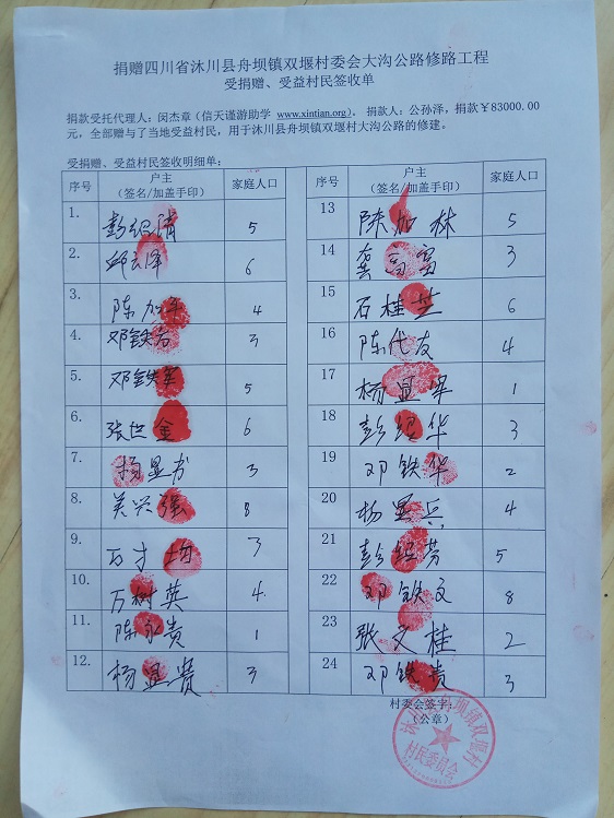 受益村民签字单